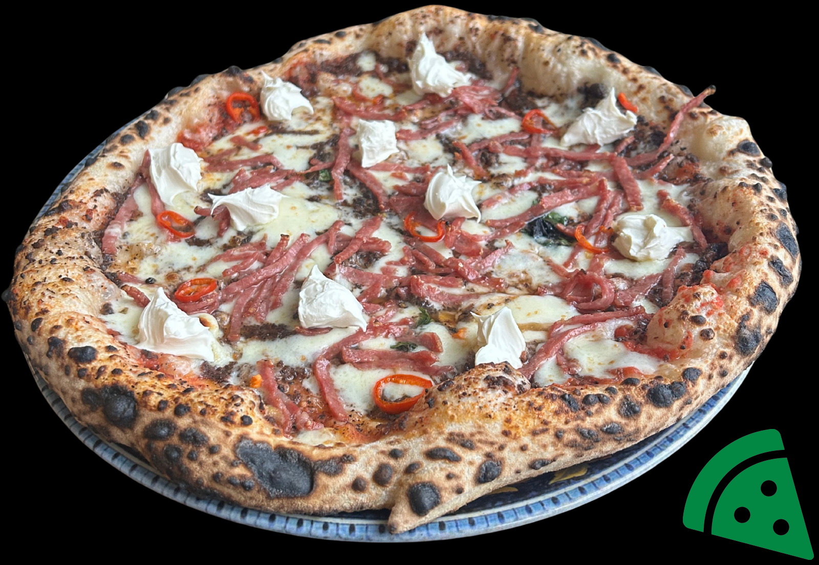 Pomidory San Marzano, mozzarella Firo di Latte, parmigano reggiano, swieza bazylia, salami Napoli, papryczki chilli, oliwa extra virgin